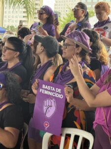 Várias lideranças que subiram ao palco exigiram o reconhecimento da misoginia como crime específico, uma vez que manifestações de ódio, desprezo, violência simbólica e ataques dirigidos a mulheres pelo gênero estruturam e sustentam todas as formas de violência, inclusive o feminicídio.