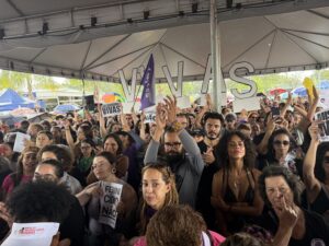 Ao finalizar seu discurso, a deputada federal Érika Kokay disse: “Chega de silêncio, chega de morte, chega de abandono! Nossa luta é por vidas, pelo direito de existir sem medo. Some sua voz, sua força, sua revolta. Por nós, pelas que vieram antes e pelas que precisam viver”.