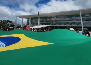 Foto da Bandeira do Brasil – O ato aconteceu ao mesmo tempo em que um evento promovido pelo governo federal para relembrar o 8 de Janeiro| Crédito: Lorenzo Santiago/Brasil de Fato